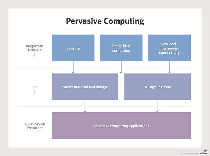 An Apple Watch that alerts the user to a phone call and enables the user to answer the call through the watch is an explication of pervasive computing. Another situation is when a subscriber to Audible, Amazon’s audio book server, begins their book on the train using the Audible app on a smartphone and continues using it at home using an Amazon Echo.