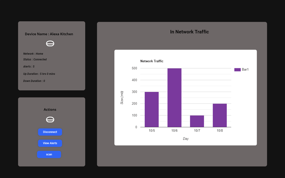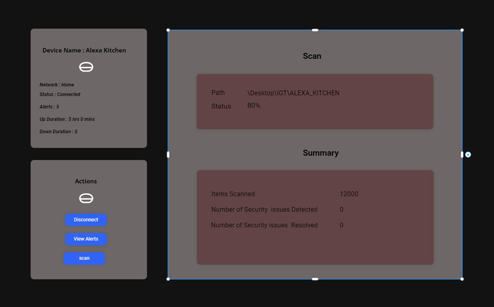 Scanning is the most essential requirement in a smart home, daily scanning can assist in minimizing the risk of threats and vulnerabilities. Scanning information is indicated in this panel. Also is there any updates required for the IoT devices, that will also notified in this panel.