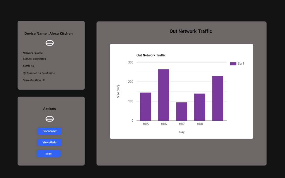 Out traffic or the traffic flows of several interconnected IoT devices can be monitor from this panel.